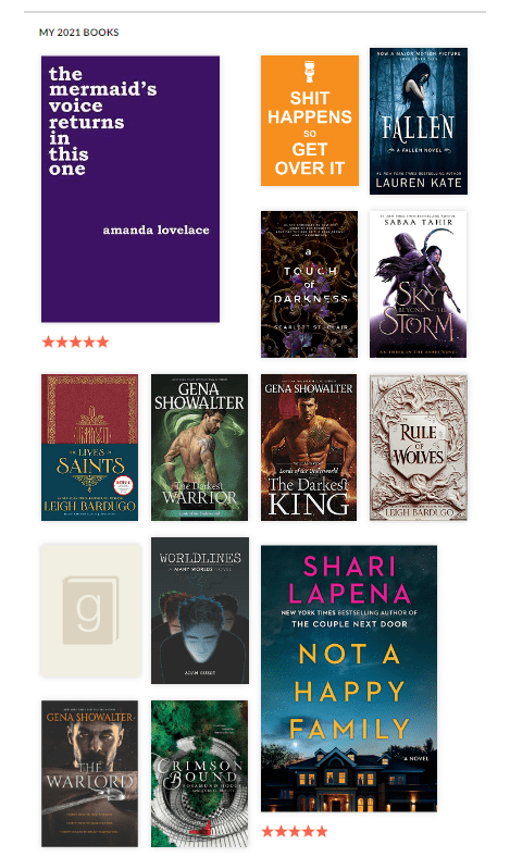 I did a lot better this year balancing time with a toddler and picking up books. 2020 was a bit of a challenge since my kid didn’t want to nap in her crib, but instead preferred someone to be holding her for the full 2-hour affair. She’s also a very light sleeper. So one weird movement or the sound of pages turning and she was back awake. I typically just took a nap with her. Or carefully scrolled on my phone. I DID get a few ebooks in during the year 2020. But we’re not here to talk about that abomination of a year. We’re here to talk about 2021.